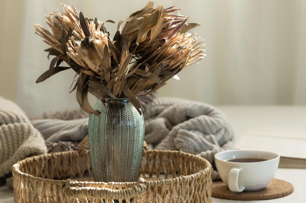 Bohre Drainagelöcher, grundiere, lackiere in deiner Lieblingsfarbe und beschrifte mit Kreidestift. An einer Holzleiste angeordnet, wächst ein duftendes Kräuterregal. Berichte, welche Kräuter bei deinem Licht am besten gedeihen und warum.